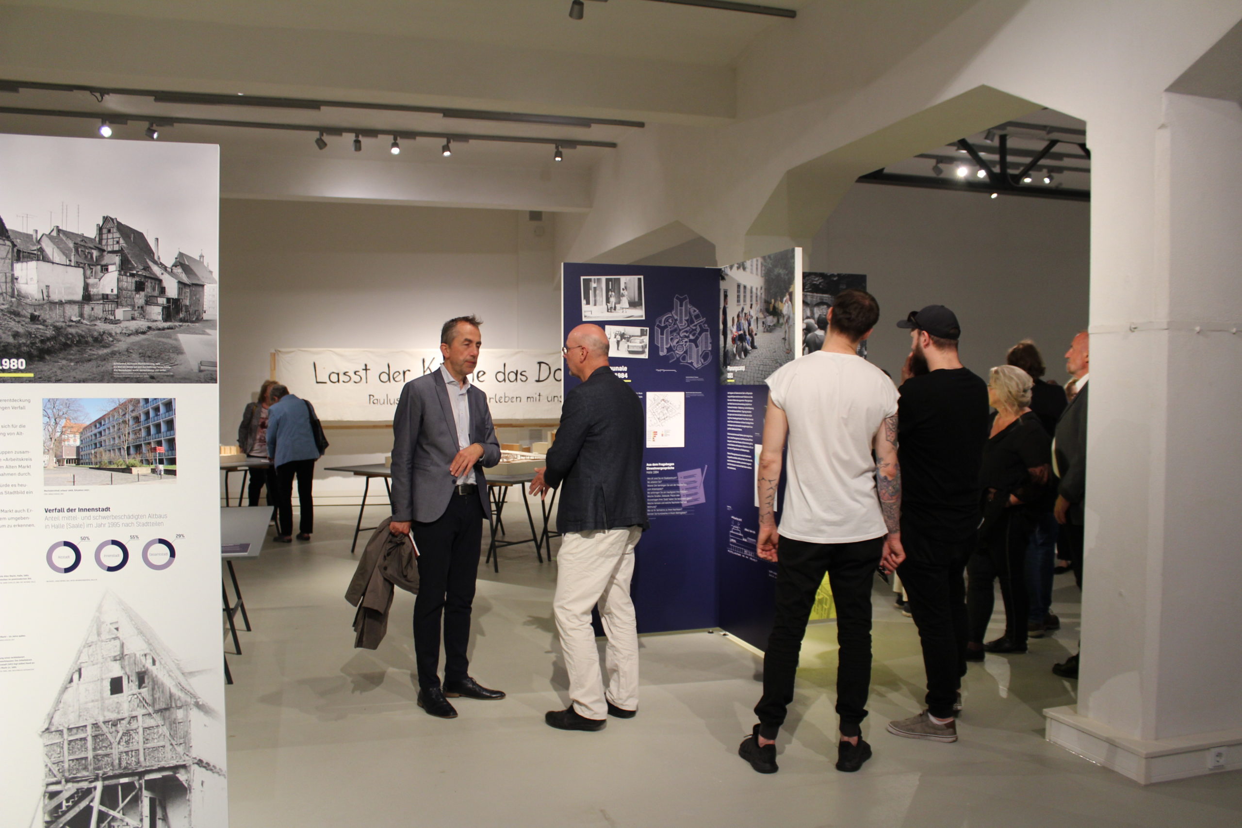 Die Ausstellung „Stadtwende-Halle“ ist am 9. Juni 2022 unter Anwesenheit von ca. 150 Personen durch den Bürgermeister der Stadt Halle/S., Herrn Geyer, und die Museumsdirektorin, Frau Unger, eröffnet worden. Die Ausstellung in Halle ist Teil des Forschungspaketes der Universität Kassel, Part Modellprojekte und Kulturinstitutionen. Sie wurde in Kooperation mit dem Stadtmuseum Halle sowie Bürgerinitiativen in Halle, wie dem AKI oder der ehem. BI Paulusviertel erstellt. Kurator ist Prof. Dr. Harald Kegler. Co-Kuratorinnen sind Cornelia Zimmermann und Lisa Pribik vom Stadtmuseum Halle. In der Ausstellung sind neben den 10 großformatigen städtebaulichen Modellen, den 18 fachlichen Informationstafeln zur Stadtwende in Halle auch eine Fotogalerie mit Aufnahmen von Ines Zimmermann zum Stadtverfall Halle sowie eine Umweltausstellung von 1983, die in der Kirche am Markt gezeigt worden war, zu sehen. Zudem wird ein Film und Projektarbeiten von Studierenden der Universität Kassel zum Thema „Klimatopia“ gezeigt. Zur Ausstellung ist auch ein Katalog erschienen, der von Harald Kegler, Wiebke Reinert, Constanze Kummer und Benjamin Eckel (Universität Kassel) herausgegeben wurde. Die Ausstellung Stadtwende-Halle wird zudem, darauf verwies der Bürgermeister, ein Teil der Bewerbung der Stadt Halle für das „Zukunftszentrum deutsche Einheit und europäische Transformation“ werden.